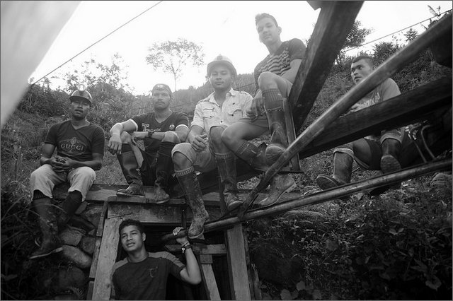 128028 - colombia - mina facil. minatori seduti sui binari per il trasporto pietre - giu 2012-